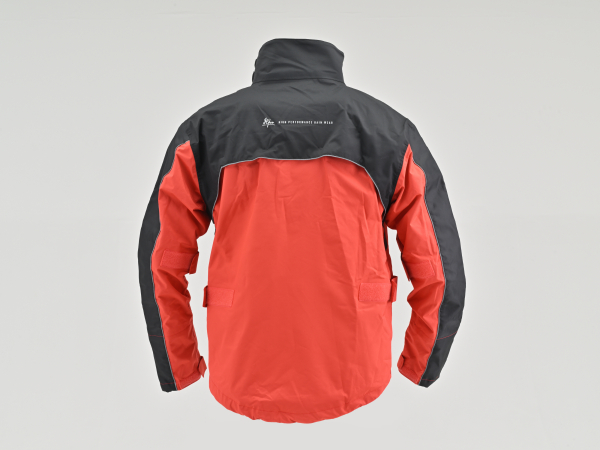 ライダーが濡れないことを最優先に考えた、バイク用 防水・透湿 高性能レインウェアジャケットは、動きやすいストレッチ生地を使用し、斜めに配置したフロントフラップがファスナーからの浸水を防止。首元には内側がクロロプレン素材の高い襟を採用し、袖口は二重袖とサムホール、裾は二重裾とドローコードで雨滴の侵入を防ぎます。背中のベンチレーションがムレを防ぎ、バタツキを防ぐ幅広の面ファスナーはグローブでも使いやすい設計です。【動きやすいストレッチ生地】快適性向上のためストレッチTPUコート生地を採用。耐水圧20,000mm、透湿度5,000mm。【斜めファスナーフラップで浸水を防ぐ】ファスナーフラップを斜めにしたことで雨滴が流れ落ち、ファスナーからの浸水を防ぐ。【腹部からの浸水を防ぐ】雨滴の溜まる腹部からファスナーをずらすことで、ファスナーからの浸水を防ぐ。・カラー:レッド ・サイズ:BL(身長170〜180 / バスト96〜104 / ウエスト83〜98(cm)) ・素材:ポリエステル100% / TPUコート(裏地) ・初期耐水圧:20000mm JIS L1092 B法・初期透湿度:5000mm JIS L1099 B-1法※身長は目安であり、体型によりあてはまらない場合があります。 ※バスト、ウエストは当社独自の計測方法に基づく寸法となります。 ※バスト、ウエストは商品の下に着るウエアの上から計測ください。※実際の商品は個体差が生じる場合があります。