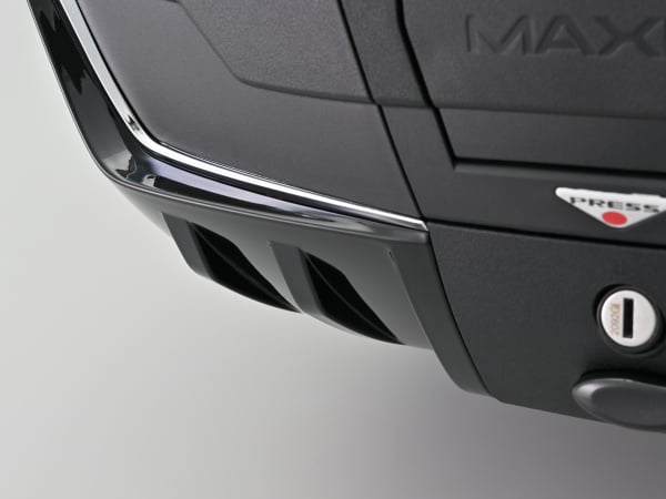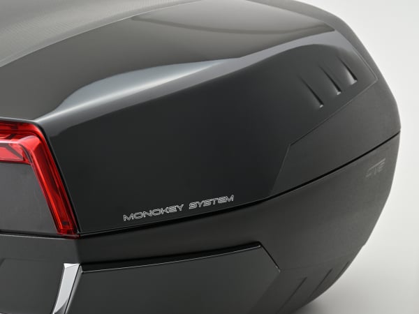 ヘルメット2つが入るモノキーケース最大容量。プッシュダウンクローズシステム。ボトムインナーマット、インナーネット付属でケース内での荷物の振動を軽減。ケース内部に簡易防犯ブロッキングシステム新規採用。開口ストッパーはケーブルからヒンジ式へアップデート。
