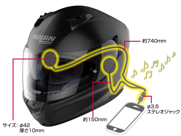 ヨーロッパで高い知名度を誇るUCLEAR社製のヘルメットスピーカー。特殊コーティングを施した40mmの大型ドライバーを採用し、鮮明で迫力のある重低音を実現。ミュージックプレイヤーやナビ、ラジオなどには、φ3.5オーディオジャックで接続します。