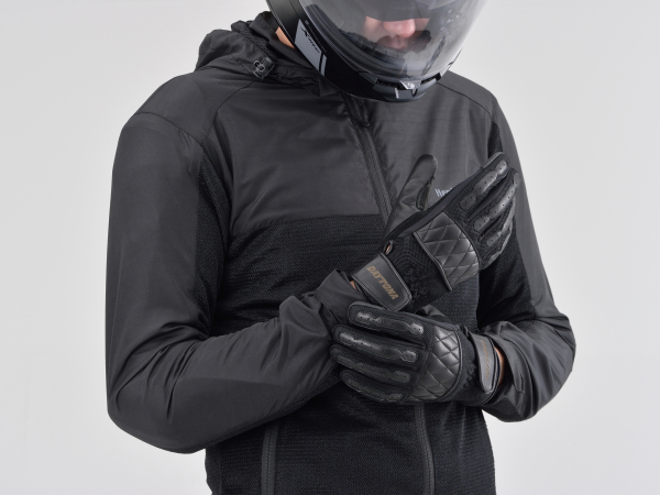 ヘンリービギンズ立ち上げ当初の人気モデルDH-609を現在の技術で再設計。プロテクト効果が必要な部位には本革を多用することで安全面を確保しつつ、メッシュ生地を組み合わせることで、通気性を両立。手の平側は耐摩耗性が高い本革を使用。タッチパネル対応です。