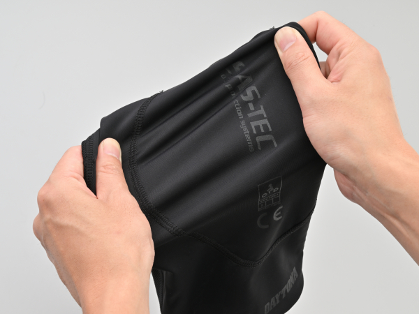 気軽に着けて、しっかり守る安全性の高い「CE規格 レベル2」をクリアする、SAS-TEC製トリプルフレックス内蔵のサポーター型プロテクター。普段はやわらかく体への追従性が高く快適で、万一衝撃が加わると瞬間硬化する特殊な発泡ウレタンが体を守ります。サポーター部はすべりの良い素材を採用することで装着しやすく、ベルト内側にすべり止めを付けることでベルトを廃止し装着感も向上。・サイズ:L・付属プロテクター:SAS-TEC トリプルフレックスエアーシート レベル2【寸法】長さ 35cm太もも(ひざ上) 38〜52cmふくらはぎ 32〜41cm