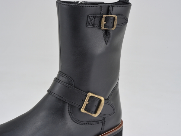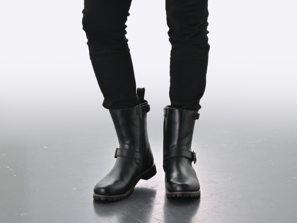 バイクライダー定番スタイルのエンジニアブーツレザーブーツの王道デザイン。ミドル丈のエンジニアタイプ。くるぶしにはクッションパッドを装備。裏地付きでやわらかい履き心地なので、革なのに痛くなりにくい仕様。セミオートマチックスライダー採用でYKK製ファスナーがぶらつきません。脱ぎ履きしやすいサイドジップタイプ。ファスナーカバー付きで愛車を傷から守ります。外皮の内側にシフトパッドを装備。バイク(ステップ)との接点であるソールの土踏まず部には滑り止めを付けることでより安定したライディングが可能です。・素材:アッパー部分 - 牛革 内装 - ポリエステル ソール部分 - 合成ラバー※防水機能はありません。※ワイズ(足囲)2E相当。