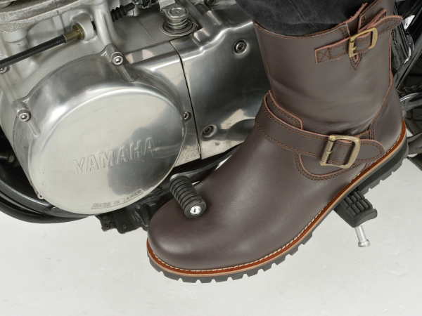 バイクライダー定番スタイルのエンジニアブーツレザーブーツの王道デザイン。ミドル丈のエンジニアタイプ。くるぶしにはクッションパッドを装備。裏地付きでやわらかい履き心地なので、革なのに痛くなりにくい仕様。セミオートマチックスライダー採用でYKK製ファスナーがぶらつきません。脱ぎ履きしやすいサイドジップタイプ。ファスナーカバー付きで愛車を傷から守ります。外皮の内側にシフトパッドを装備。バイク(ステップ)との接点であるソールの土踏まず部には滑り止めを付けることでより安定したライディングが可能です。・素材:アッパー部分 - 牛革 内装 - ポリエステル ソール部分 - 合成ラバー※防水機能はありません。※ワイズ(足囲)2E相当。