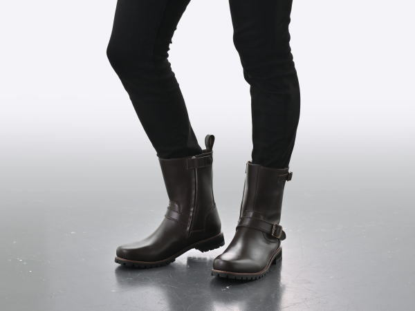 バイクライダー定番スタイルのエンジニアブーツレザーブーツの王道デザイン。ミドル丈のエンジニアタイプ。くるぶしにはクッションパッドを装備。裏地付きでやわらかい履き心地なので、革なのに痛くなりにくい仕様。セミオートマチックスライダー採用でYKK製ファスナーがぶらつきません。脱ぎ履きしやすいサイドジップタイプ。ファスナーカバー付きで愛車を傷から守ります。外皮の内側にシフトパッドを装備。バイク(ステップ)との接点であるソールの土踏まず部には滑り止めを付けることでより安定したライディングが可能です。・素材:アッパー部分 - 牛革 内装 - ポリエステル ソール部分 - 合成ラバー※防水機能はありません。※ワイズ(足囲)2E相当。