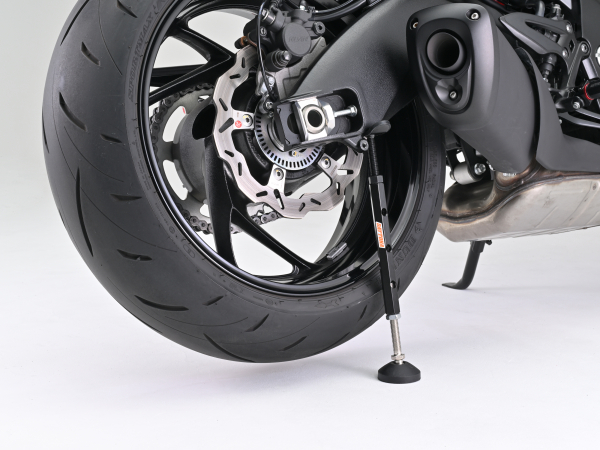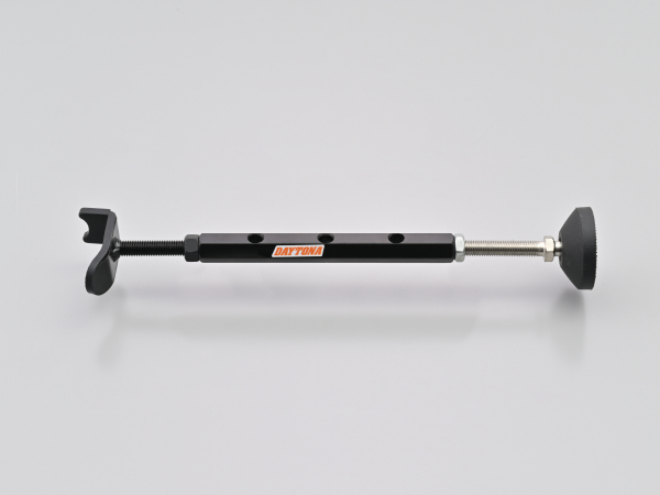 本体が六角になってスパナで回せるようになりましたサイドスタンドと併用してリアホイールを持ち上げるための簡易スタンド。本体が六角になってスパナで回せるようになりました。ホイールの清掃やチェーン注油などの簡単なメンテナンスに最適。無段階で高さ調節が可能なため、さまざまなバイクに対応します。【意匠登録出願中】・調節範囲:250mm〜345mm・六角対辺19mm※ホイールを取り外すようなメンテナンスには使用できません。※塗床などの上で使用する場合は、接地部が滑りやすいのでご注意ください。※スタンド使用中はフロントブレーキは握った状態を保持してください。デイトナ製「フロントブレーキロック(91712)」の同時使用を推奨します。