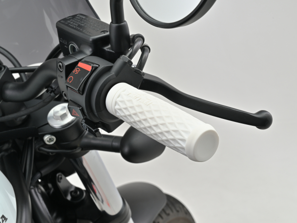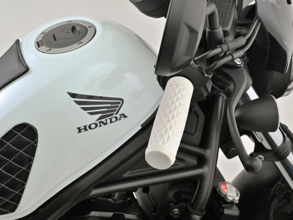 エアインテークグリル風デザインのGRIDのツバを無くし、クローズドエンド化したクルーザー向けモデル。・カラー:ホワイト・長さ:127mm・Φ25.4(インチバー)ハンドル用・エンド非貫通