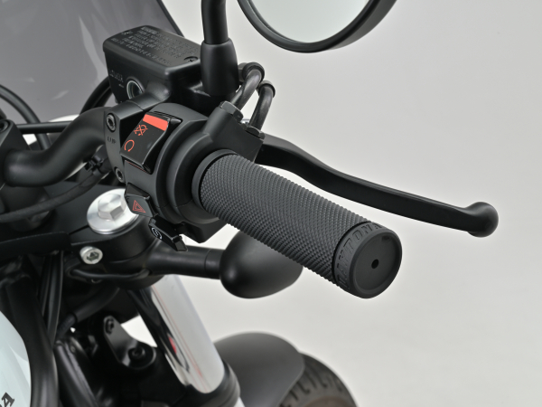 ベーシックなピラミッドタイプのツバを無くし、クローズドエンド化したクルーザー向けモデル。・カラー:ブラック・長さ:125mm・Φ25.4(インチバー)ハンドル用・エンド非貫通