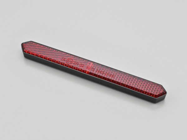 Eマーク取得済のリフレクター。・タイプ:後方反射器 / フラット・カラー:レッド・サイズ:縦15mm×横134mm・取付方法:両面テープ・1個入り ・ECE認定取得済(側方/後方)※車両後方への取り付けのみ対応※両面テープ固定のタイプは貼付箇所の錆の除去、脱脂洗浄を必ず行なってください。