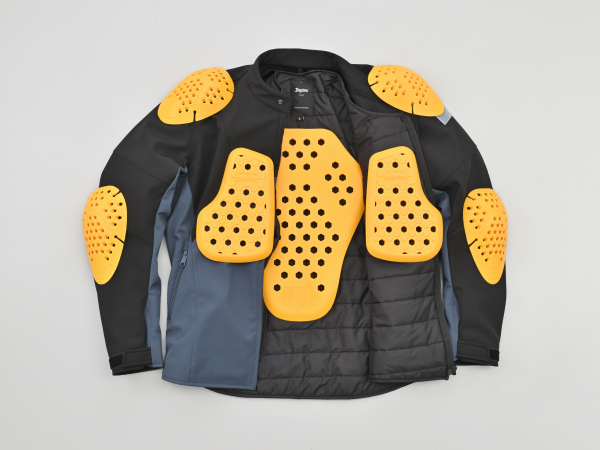 CEプロテクターフル装備。スマートなシルエットと動きやすさが両立したショート丈ライダーススマートなシルエットのショート丈ライダースジャケット。タイトなフォルムながら前傾姿勢で動きやすいデイトナ独自のパターンを採用。ソフトな防風生地のアウターと、中綿のインナーを組み合わせることで、しなやかで軽い着用感と防寒、保温性を両立。アウターはエアベンチ付きで春秋冬と長期間着用でき、脱着式のインナーは単品でも着用できるのでツーリング先の着回しに便利。シンプルなデザインに反射プリントや立体切替ラインがアクセントになっています。胸、ひじ、肩、背中にCE取得ソフトプロテクター標準装備(SAS-TECへの交換も可能)。ひじプロテクターの高さ調整が可能です。・カラー:ダークネイビー・サイズ:S・プロテクター:胸 / 肩 / 肘 / 背中・対応シーズン:春 / 秋 / 冬【寸法】着寸67cm肩幅45cmバスト118cmウエスト100cm裾周り101cm袖丈62.5cm※図面寸法のため製品により1〜2cmの差が発生する場合があります。