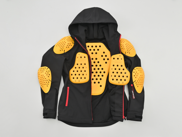CEプロテクターフル装備。中綿無しの防風ジャケット、お手持ちのインナーを組み合わせて冬も快適にタウンユースにも適した、ミドルカットの春秋ジャケット。ライディングウエアとしての機能を備えつつ、バイクを降りたときにも違和感がない「中間前腕設計」を採用。着心地の良い防風のソフトシェル生地は高い保温性を発揮。若干オーバーサイズに設計してあるので、市販のダウンジャケットなどを内側に着込めば冬も快適。(ばたつき防止ベルトを腕と腰に設定。)フードはベルトで固定が可能。腕にコインポケット付き。胸、ひじ、肩、背中にCE取得ソフトプロテクター標準装備(SAS-TECへの交換も可能)。ひじプロテクターの高さ調整が可能です。・カラー:ブラック/レッド・サイズ:S・プロテクター:胸 / 肩 / 肘 / 背中・対応シーズン:春 / 秋 / 冬【寸法】着寸68cm肩幅43cmバスト110cmウエスト105cm裾周り109cm袖丈62.5cm※図面寸法のため製品により1〜2cmの差が発生する場合があります。