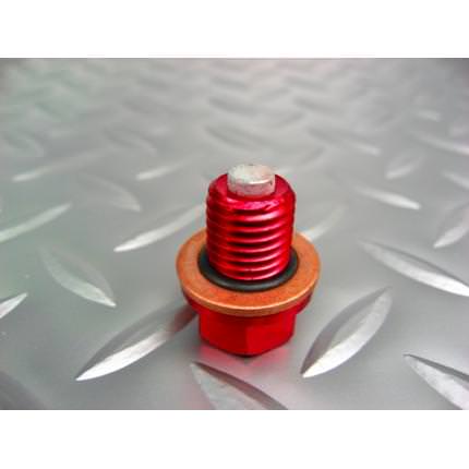 アルミ製ボルトにマグネットが装備されており、エンジン内部の鉄系不純物を引きよせ、クランクケース内を浄化することができます。
