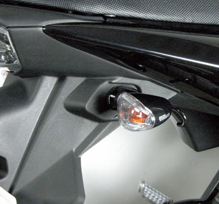丸みのあるノーマルウインカーからシャープな武川製ストリームラインウインカーに変更することで、フロントビュー・リアビュー共にスタイリッシュなイメージにまとめることが出来ます。