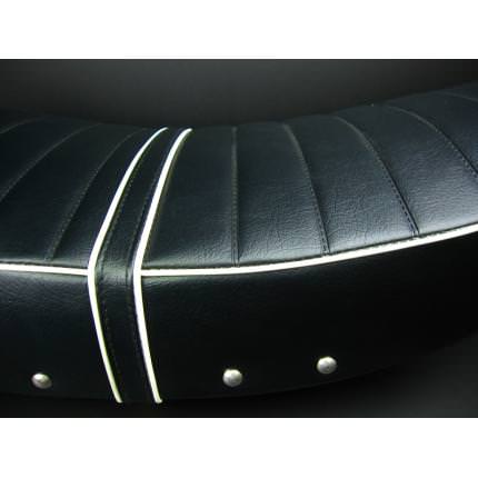 ・ダックス用ローダウンタックロールシート・シート中央部分のアンコ抜きを施し、シート高を抑えたデザイン・ミニモト社、他商品と比較してシート高が低くなっております。・ダックスに使用できる取り付けステーとボルトが付属します。・材質 合成皮革(シート表皮)、スチール塗装(シートベース)、スチール塗装(シートステー)・在庫切れの場合、納期までに1週間ほどいただく場合がございます。・カラー :・シート面 ブラック・側面部 ブラック・パイピング ホワイト・ベルト ブラック×ホワイト