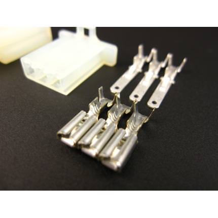 110シェルロック付き3極カプラーコネクターセット・仕様・・110型3極端子・カプラー オス、メス×各1ケ・付属ギボシ オス、メス×各3・備考・ホンダモンキーのテールランプやヘッドライトコネクターの代用パーツ