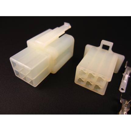 110シェルロック付き6極カプラーコネクターセット・仕様・・110型6極端子・カプラー オス、メス×各1ケ・付属ギボシ オス、メス×各6ケ・備考・ホンダ12Vモンキーのエンジンコネクターの代用パーツ