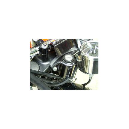 タンク下にあるメインキーをトップブリッジへ移動するパーツです。本来ノーマルスピードメーターがある部分に取付けるため、ノーマルメーター使用できません。ミニメーター等への変更が必要です。またヘッドライトの変更も必要になります。