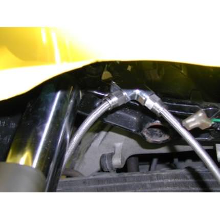 ホースカラー:スモークホース素材:ステンレスメッシュフィッティングカラー:シルバー(ステンレス素材)フィッティング素材:ステンレス※画像中のブレーキフルードは付属しません。別途お買い求めください。取り廻し:Y字型タイプ:トライピース■備考:国内仕様は02年モデルまで。