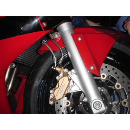 SWAGE-LINE-PRO フロントブレーキホースキット クリアホース レッド・ブルー/シルバー h字型 バイピース スウェッジライン CBR600RR 03〜04年