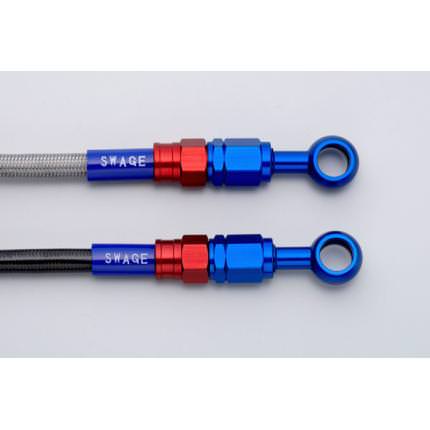 SWAGE-LINE-PROフロントブレーキホースkitスモークホース レッド/ブルー アルミ h型2本タイプ バイピース NINJA1000 11〜12年ABS不可