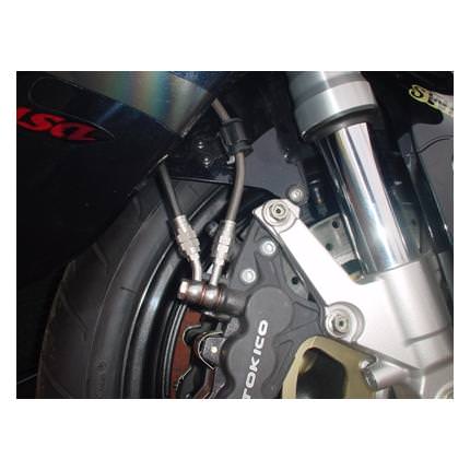 SWAGE-LINE-PROフロントブレーキホースキット クリアホース レッド・ブルー/シルバー h字型 バイピース GSX1300Rハヤブサ 99〜07年