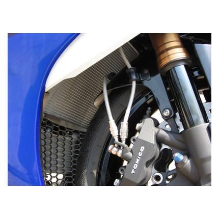 SWAGE-LINE-PRO フロントブレーキホースキット クリアホース レッド・ブルー/シルバー h字型 バイピース スウェッジライン GSX-R1000 07〜08年
