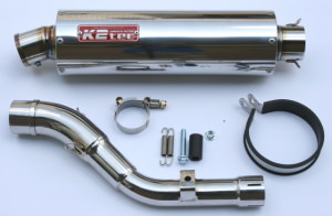 ステンレステールパイプ。ステンレスサイレンサー外径Φ100。出口形状:モタードタイプorS5タイプが選択可能。筒長320mm 極小バッフル付き。ガスケットの付属はありませんので予めガスケットをお求め下さい。高回転の力強さはもちろん中速のトルクUPを体感できます。林道や住宅地でも気にならない程、静かな音量に抑えつつ、低音を響かせる構造を取り入れております。(極小バッフル採用)バッフル装着時(極小):84db(当社計測値)静かを求める方向き通常タイプに採用。(オプション)バッフル装着時(小):88db(当社計測値)心地よいそこそこの音量を求める方向き。