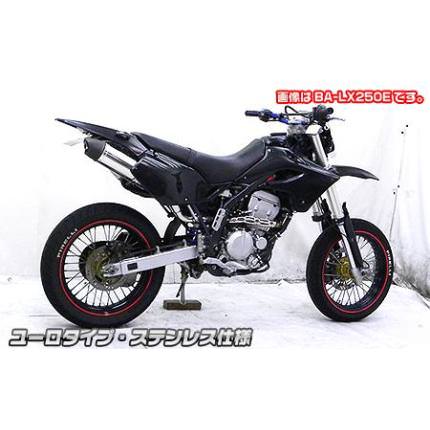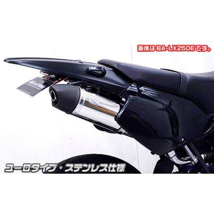 ■受注生産商品となっており、商品手配後 2週間程度入荷にお時間を頂きます。■※平成22年4月1日より施行された認証制度に適合する認証マフラーではありません。ご理解の程よろしくお願い致します。・※車体型式:JBK-LX250V・JBK-LX250Sに適合します。※サイレンサー部分だけ取り替えるスリップオンタイプの商品です。・手軽にカスタムできる定番のスリップオンマフラーです。・サイレンサーは90mm径を採用。・材質は耐久性、耐腐食性の高いオールステンレス製です。・バッフル(消音用のパーツ)を標準装備しておりますので、簡単な作業で2種類の音量が選択できます。・音量:バッフル装着時89db-バッフル非装着時排気音量93db