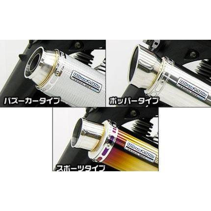 ■受注生産商品となっており、商品手配後 2週間程度入荷にお時間を頂きます。■※平成22年4月1日より施行された認証制度に適合する認証マフラーではありません。ご理解の程よろしくお願い致します。・アルティメットマフラーは、高度な技術をぎっしりと余すところ無く詰め込んだ、クオリティの高い究極の一品に仕上がっています。究極の理想型を具現化した新時代マフラーです。高級感を追求したデザインを施し、ノーマル車からハードカスタム車まで、若者から年配者まで幅広い層に対応するマフラーに仕上げました。・サイレンサー出口には削り出しタイプを採用し、立体感ある造形が最終エンドを引き締める【 バズーカータイプ 】、内巻きタイプのスラッシュカットが高級感を漂わせる【 ポッパータイプ 】、シンプルでスポーティでありながら高級感を損なわないエンド処理を施した【 スポーツタイプ 】の3種類をご用意しております。・ステーにはこれまでに無かったアルミ無垢材から削り出した、ビレットタイプ を採用しました。WirusWinロゴも彫り込まれております。プレート、カラー、ボルトキャップすべてアルミ無垢材からの削り出しで製作しており、シャープで超高級デザインに仕上がっています。幾度ものテストを重ね、高強度で耐久性に優れた製品に仕上げました。・サイレンサー内部には、従来オプション扱いだった【 キャタライザー(排ガス浄化触媒)】を標準装備しておりますので、ノーマル同様の環境性能を発揮致します。・バッフル(消音用のパーツ)を標準装備しておりますので、簡単な作業で2種類の音量が選択できます。・装着はステーを2点止めで固定し、サイレンサーをバンドで止めてエキパイをエンジン側に固定するだけですので比較的簡単に取り付けできます。・ローダウン車にも対応できるよう製作しています。極端なローダウン量、ショックの固さ、走行条件、ワイドカウル装着等で場合によりボディと干渉する恐れがありますのでご注意下さい。・干渉してしまう際には走行時にはリアショックを一番固い設定にして使用してください。・エキパイにO2センサー(排気濃度センサー)取付け口が付きますので、ノーマルのO2センサーが装着できるようになっております。・音量:バッフル装着時約 89db バッフル非装着時:93db