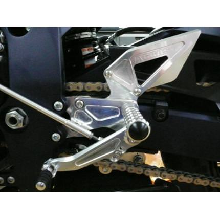■受注生産商品となっており、商品手配後 10日~2週間程度入荷にお時間を頂きます。■4ポジション UP:30mm/40mm BACK:30/40mmアルミ削り出し製ペダルをステップバーと別軸にし、さらにペダルの先が可倒式となっており転倒時のトラブルを最小限に抑える仕様となっております備考※写真のように逆チェンジにする場合は純正のスプロケットカバーを削る必要があります(正チェンジの場合は削る必要はありません)※レース用ですので純正のブレーキスイッチは使用できません