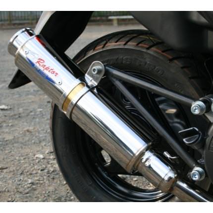 ・認定:政府認証マフラー・エキゾースト素材:ステンレス・サイレンサー素材:ステンレス・音量(db):88・メインスタンド:○・オイルフィルター:○・オイルドレン:○・タンデム:○・騒音規制:○・排ガス規制:○・独自開発の多段圧縮膨張構造サイレンサー“RAPTOR”を搭載しました。 実走行テスト・シャーシダイナモテスト・モニタリングを行い、ベストな背圧セッティングを追及してから製品化しております。開発にかかるコストにとらわれずに研究を行った結果、1000種類以上のサイレンサー構想と300種類を超える試作サイレンサーを製作し、それらが80D-RAPTORブランドマフラー開発の基本となっております。スタンダードサイレンサーとの交換のみで走行性能アップを実現。トルク特性をフルフラットに向上させているため、とても扱い易く、レスポンスが良く、どの回転域からスロットルをオープンにしても力強い加速フィールを発揮します。安心してライディングを楽しんでいただけるよう、平成22年4月1日以降生産車から適用になった「マフラー政府認証」を取得しております。