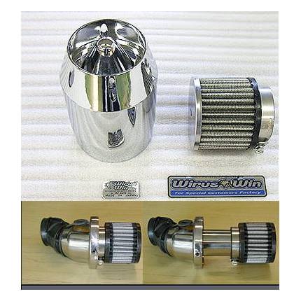 ■受注生産商品となっており、商品手配後 2週間程度入荷にお時間を頂きます。■こちらの製品はタイホンダ製ズーマーX(110cc)専用商品です。国内50ccズーマーには適合いたしません。ご注意くださいませ。還元パイプに対応しております。従来のエアークリーナーKitより、さらに低価格で手軽にパワーフィルター化できる今までに無いKitです。ボディはプラスチック製でクロムメッキを施しております。インテーク部分はステンレス製バフ仕上げで、取付ステーには強度の強い12mm径のステンレス丸棒を採用し、幾度ものテストを重ね完成させていますので、強度、耐久性はバッチリです。ノーマルエアークリーナーから、簡単にボルトオンで付け替えできます。ローダウン車両にも対応いたします。クリーナーにはパワーフィルターが装備されています。従来はパワーフィルターにあわせて、インジェクションコントローラーなどでのセッティングを行わなくてはいけませんでしたが、この商品は必要吸気量にあわせて一定の範囲内で無段階に調整でき、還元パイプ対応ということもあり簡単にセッティング出しやすく、パワーアップが計れます。ブリーズタイプ エアクリーナーKitの内部で、エアーの量を最小限したりエアーの量を最大限にしたりできますです。ノーマルマフラー、ウイルズウィン製マフラーを付けた場合のエアーの量は、最小限から、15mm〜25mmのばした範囲で、ベストセッティングが捜し出せます。※ボアアップ、駆動系、抜けの良いマフラーに変更などの改造をされている場合は、インジェクションコントローラーなどでのセッティングが必要となることがあります。また、さらなるパワーアップを望む方にもインジェクションコントローラーなどでのセッティングは必要です。カラーバリエーションとして シルバーメッキタイプ、ブラックメッキタイプ、レッドメッキタイプ、ブルーメッキタイプ の 4タイプ をご用意しております。