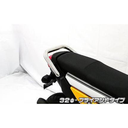■受注生産商品となっており、商品手配後 2週間程度入荷にお時間を頂きます。■こちらの製品はタイホンダ製ズーマーX(110cc)専用商品です。国内50ccズーマーには適合いたしません。ご注意くださいませ。車体に沿うように低くデザインされているのでボディラインにフィットし、かつ極太の32mm径のステンレスパイプを採用しましたので、存在感、目立ち度は抜群です!仕上げはバフ掛けを施していますので、高級感タップリでドレスアップには最適の逸品です。バーが極太なので、パッセンジャーが握りやすく力を入れやすいので、安全性も高くなっております。材質は、耐久性、耐腐食性の高いオールステンレス製です。