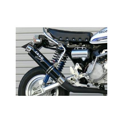 スチールエキパイ:φ35スチールテールパイプ:φ50.8アルミサイレンサー:φ80x300mm(ブラックアルマイト) ・エンドバッフル標準装備・インナー径50φ ストレート排気・STDキックペダル NG(モンキーRタイプを使用してください。)・OVER製バックステップ OK・OVER製スイングアーム OK