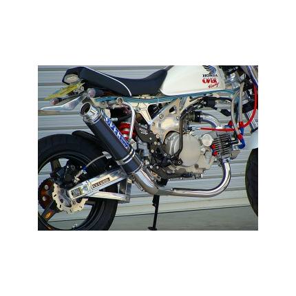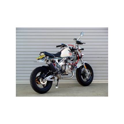 ステンエキパイ:35φステンテールパイプ:50.8φカーボンサイレンサー:80φx300mm重量2.3kg・STDキックペダル NG(モンキーRタイプを使用してください。)・OVER製バックステップ OK・OVER製スイングアーム OK・エンドバッフル標準装備・インナー径50φ ストレート排気■OVER製バックステップ適合表。商品説明人気NO1の実力派マフラー、レーシングダウンのステンレスエキパイ(φ35)からテーパー管を採用しハイスペックエンジン(124ccスペシャルヘッド仕様)などにも十分対応する性能。ラウンドカーボンサイレンサー(φ80×300mmインナーφ50ストレート構造)採用でコストパフォーマンスの優れたモデル。高回転の伸びにユーザーから高い評価を得ています。エンドバッフル脱着式で音量調節可能。専用アルミステー付き。