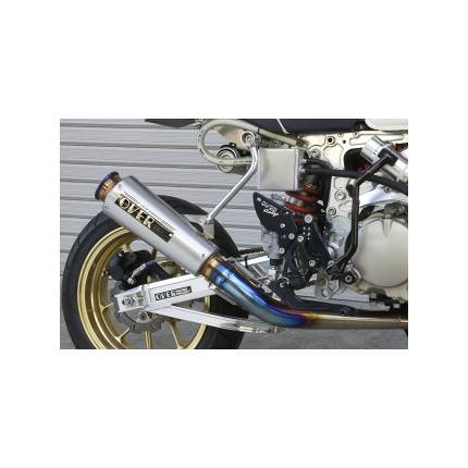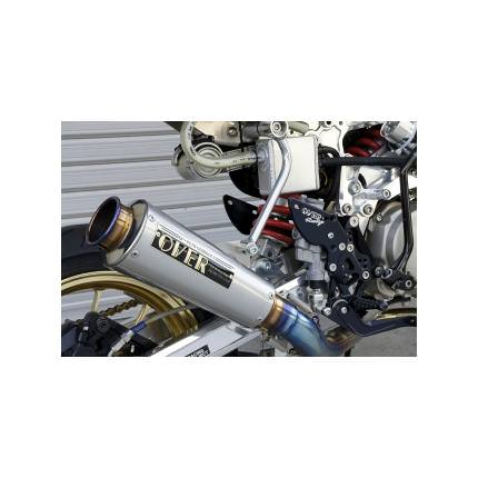 チタンエキパイ: φ35チタンテールパイプ: φ50.8チタンサイレンサー: φ75/φ100x230mmインナーパイプ:φ50.8 (排気量100cc以上推奨)重量: 1.6kg・エンドバッフル標準装備・OVER製バックステップOK・OVER製スイングアームOK・STDキックアーム使用不可。(キタコ社製を使用してください。)GP-PEFORMANCEシリーズ (13-01-25/13-01-25R/13-01-40)には、差込口径が異なるため対応していません。