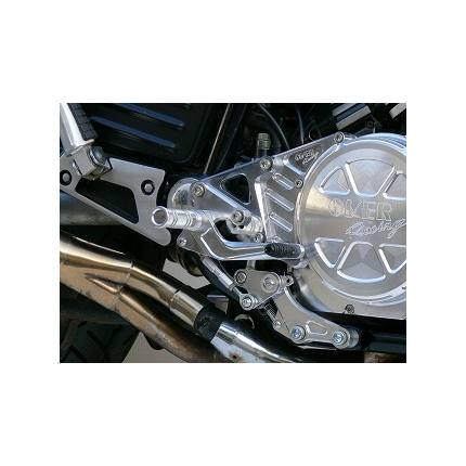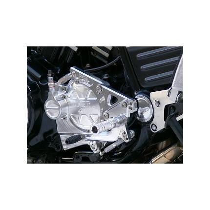 4ポジション1, 130mmBack/15mmUp2, 130mmBack/25mmUp3, 140mmBack/15mmUp4, 140mmBack/25mmUp・逆シフトパターン対応。・STDブレーキホース使用可能。・STDブレーキマスター&ブレーキスイッチ使用可能。・タンデム:OK・サイドスタンド:OK*掲載画像について。クランクケースカバー(57-34-11)とライトタッチクラッチキット(84-34-10)の同時装着画像です。バックステップキットには含まれておりません。