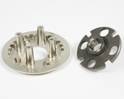 ※取付けの際は弊社製ダイカストクラッチカバーが必要になります。スリッパークラッチの装着にあたり、構造上エンジン始動時クラッチに滑りが発生するので、弊社製デコンプカムの使用を推奨します。本製品を使用することでノーマルメインシャフトのまま2次側クラッチ及びスリッパークラッチ化が行えます。取付けの際は弊社製ダイカストクラッチカバーが必要になります。本製品はすでに弊社製クラッチカバーをお持ちの方を対象としたカバーレスキットです。クラッチの構造:特許構造のアダプターを使用することで、ノーマルメインシャフトのまま二次側クラッチに変更することができます。クラッチが二次側取付けとなることでクランクシャフトの負担が減り、レスポンスが向上します。クランクシャフトとミッションの間で動力の接続を行うクラッチ部のプレッシャープレートとクラッチカムにはスリッパ-構造を設けています。これにより後輪からバックトルクが伝わると、プレッシャープレートのカムとクラッチカムが作動し、プレッシャープレートを押し下げることで半クラッチ状態になりバックトルクを逃がします。スリッパークラッチ仕様:スリッパ-クラッチ構造で重要となるクラッチプレッシャープレートには、クラッチカムとの耐摩耗性と摺動性を高めるため特殊メッキを施しました。プライマリードリブンギアにはダンパーを組み込み、クラッチ接続時のショック低減を図っております。フリクションディスク数を5枚とし、ストリート及びレースを問わずハイパワーエンジンに対応します。クラッチアウターは耐久性と強度に信頼のあるアルミダイカスト製。