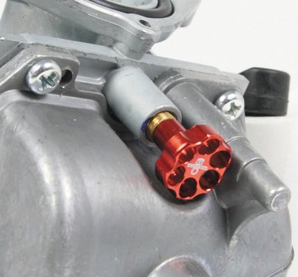 ※武川販売の現行MIKUNI VM22キャブレター(03-03-0060)対応です。指先で調整出来るアルミ削り出しパイロットスクリューです。調整時に必要となるマイナスドライバーが本製品を装着することで不要となり、整備性が飛躍的に向上します。又、アルミ削り出しアルマイト仕上げの美しいダイヤル部分がキャブレターのカスタムイメージを高めます。表面にはアルマイトを施し、シルバー、ブラック、ブルー、レッドの各4色をご用意しました。