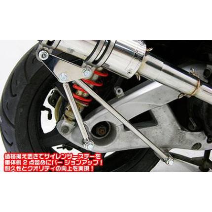 ■受注生産商品となっており、商品手配後 2週間程度入荷にお時間を頂きます。■※平成22年4月1日より施行された認証制度に適合する認証マフラーではありません。ご理解の程よろしくお願い致します。2008年サーキット秋ヶ瀬にて開催されたモトチャンプ杯ミニバイクレース全国大会のFP4クラスに参戦し、強豪がひしめく中で見事に優勝して日本一の称号を獲得したマフラーと、全く同じ仕様の最強最速マフラーです。レーシングマフラーZには ハイパーセンタースプリング が付属されていますので、取り付けるだけですぐにレースで戦える状態になります。レーシングマフラーZは、サポートライダーが現状で最高と判断してレースで使用したそのままの仕様を市販化しています。レースで使用した先行開発タイプと市販タイプとの区別をする事無く、現状で最高と判断した仕様を即時フィードバックして製品としておりますので、バイクの仕上がりとライダーの腕次第で十分にトップ争いが可能です。バッフル(消音用のパーツ)を標準装備しておりますので、簡単な作業で2種類の音量が選択できます。装着はステーを固定し、サイレンサーをバンドで止めてエキパイをエンジン側に固定するだけですので簡単に取り付けできます。価格据え置きでサイレンサーステーを車体側2点留めにバージョンアップいたしました!耐久性アップと共にクオリティアップをしております。なお、レーシングマフラーZは更なる性能追求のための改良を常時続けていますので、予告無く仕様変更が施される場合がある事を予めご了承ください。材質は耐久性、耐腐食性の高いオールステンレス製です。