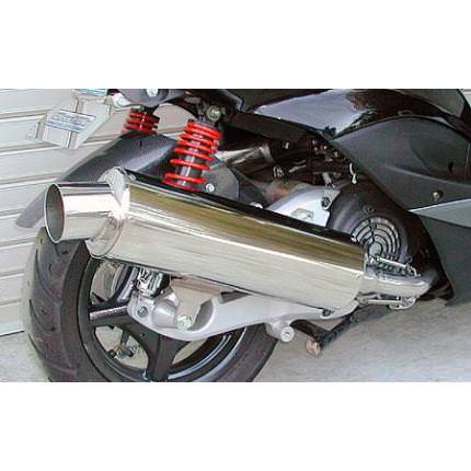 ■受注生産商品となっており、商品手配後 2週間程度入荷にお時間を頂きます。■※平成22年4月1日より施行された認証制度に適合する認証マフラーではありません。ご理解の程よろしくお願い致します。トルク感、加速感をアップさせ、高回転域までストレスのない吹け上がりを実現させた、性能重視設計のマフラーです。サイレンサーには大容量、大迫力の120mm径×400mmのステンパイプを採用。ボリュームがありますので存在感は圧巻です!エキパイ部分は38mm径のステンレスパイプで仕上げました。サイレンサーとのジョイント部分にはスプリングフックを採用し、レーシーな雰囲気を演出しております。車体のラインに調和するようにサイレンサーの位置を吟味し、あらゆるカスタムに似合うようシンプルながら高級感をイメージし、たくさんの方々からの意見を取り入れ製作しました。音量、音質にもとことん拘って、何本ものテスト品の中からベストな構造を導き出して完成させました。うるさすぎず静かすぎず、歯切れの良い重低音サウンドを醸し出します。バッフル(消音用のパーツ)を標準装備しておりますので、簡単な作業で2種類の音量が選択できます。性能面でも低中速の落ち込みをなくしスムーズな走行を実現させています。ローダウン車にも対応しておりますが、極端にローダウンしている車両(30mm以上ダウン、大きめのサイドカウル装着車)は、マフラーとボディが干渉する恐れがありますので、購入・装着にはご注意ください。※画像の商品は同車種別年式のものとなり、細部の仕様が異なりますのでご了承下さい。材質は耐久性、耐食性の高いオールステンレス製です。音量:バッフル装着時排気音量 約 87db・バッフル非装着時排気音量 約 91db
