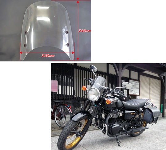 メーターバイザーの先端を反りあげることで、取り付け角度に関係なく、風を上にそらし、ライダーに風が当たらないように計算されています。ワールドウォーク社テストライダーの体感ですと、体の真ん中辺りには風はほとんど当たらない、雨天時には首から下と腿周辺に雨が当たりにくくなるというテスト結果が出ています。【体感には個人差があります。】取り付けは専用のステーを付属しています。サイズ:縦:240mm 横230mmです。取付実績車種:スズキSV1000・SV400・GS750E・イナズマ400・グース350・バンディット250・バンディット400・バンディット250SV・ウルフ250・ST250・ST250E・ボルティー・SV400・GSX400 インパルスホンダCB1000SF・CB750F【RC04】・CB750 【RC42 2003年式まで】・ホーネット600・ホーネット250・CB550・CB400SF【ブイテック車は不可】・CB400SF-S・ブロス650・ブロス400・CB-1・VRX400・GB400・GB250・cd125・CBX250RS・ジェイド・VTZ250・VT250Z・VTR250・ナイトホーク250・SPADA・CB400SS・CB223S・CB250T ホーク・ftr223ヤマハSRX600・SRX400・SRX250・SR500・SR400・SRV250・ジール・RZ250R・R1-Z・RD250・ルネッサカワサキゼファー750・W650・W400・エリミネーター400・エリミネーター400LX・エリミネーター250LX・バリオス・バリオス2・CS250・VZ750・ZRX2上記の車種全てボルトオンで取り付け出来る事を証明するものではございません。取り付けの際加工が必要になる車種もございますのでご理解の上ご購入くださいませ。