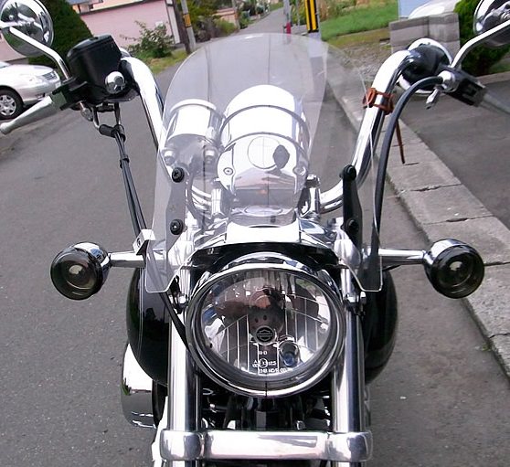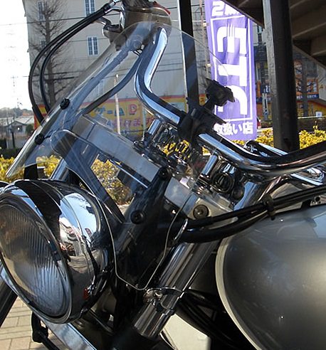 フロントフォークの径が38φ~42φの車両に取り付け可能です。このフロントフォークの系は国産だと、ドラッグスター400やスティード、輸入車だとハーレ スポーツスターやダイナなど、アメリカンに多いサイズです。アメリカンバイクは基本的に乗車姿勢が直立な物が多く、風の抵抗を体にもろに受けるものばかりです。結果的にマシンのスペック的には優れていても、体に受ける風の抵抗が強く、アクセルを開け切れないという人が多くいます。本当に小さなスクリーンですが、このスクリーンをつけたお客様は皆さん一様に・・・こんなに小さいのに風防効果が抜群です!今まで80キロぐらいだと思っていた感覚でいると、100キロぐらい出ています!前よりアクセルを開けられるようになりました!とおっしゃいます。セット内容:1:WS-01M【スクリーン+取り付け金具】2:ウインカー取り付けバンド【フロントフォーク径 38φ~42φ】取付実績車種:FXD ダイナ・スティード400・マグナ・fxdl ダイナ ローライダー・ドラッグスター400・fxdx ダイナ スーパーグライド スポーツ上記の車種全てボルトオンで取り付け出来る事を証明するものではございません。取り付けの際加工が必要になる車種もございますのでご理解の上ご購入くださいませ。