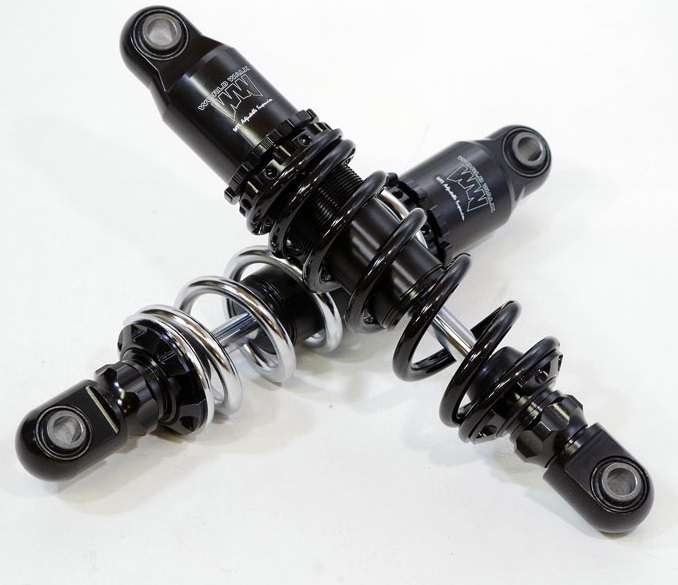 車高調整機能【320mm~295mm】プリロード調整機能【無段階調整機能】減衰力調整機能【27段階調整】車高調整機能:305mm 1Gで293mm 乗車1Gで290mm※1Gとはサスペンションを車両に取り付けた状態のサスペンションの長さ、乗車1Gとは、サスペンションを車両に取り付け、1名乗車した時の長さです。今回は65キロの人間が座った時の長さです。プリロード調整機能:2mm減衰力調整機能:最弱状態から8クリック以上のメーカー推奨セッティングでお送り致します。セッティングをいじりたいときは、まず動きの変化を確かめるために、一番最弱の状態と、一番最強の状態を確かめてみて、少しずつ調整をしてみてください。スポーツスター用 アジャスタブルサスペンションはコイル幅が一定ではないプログレッシブタイプ【不等ピッチ】のスプリングを採用いたしました。プログレッシブタイプのスプリングを採用したことで、車体にかかる、初期の荷重の負荷をコイル幅の狭い部分を受け止めコイル幅の広い部分で、大きな負荷を受け止めています。通常のスプリング形状と比べると、「バイクに乗車した時のサスペンションの沈み込みの量が変わる」「減速帯などの細かい段差のショックを緩和し、ライダーへの突き上げ感を軽減する」など、乗り心地が良くなり、スムーズな動きになります。■ショックアブソーバー本体はアルミを採用ショックアブソーバーのボディーはアルミを採用いたしました。XL1200Rなどに使われている純正サイズ(335mm)のサスペンションは3.58kgの所、ワールドウォークのスポーツスター用アジャスタブルサスペンションは2.79kgですので、およそ800g程度の差があります。高品質なブラックアルマイト仕上げです。■長距離走行でも性能を落とさない、フリーピストンを装着ショックアブソーバーの中には、窒素ガスが充填されているガス室と、サスペンションオイルが充填されているオイル室があります。ガス室と、オイル室を隔てているのがフリーピストンです。サスペンション用のオイルは空気と混ざりにくく、泡立ちにくいという特性がありますが、オイルが劣化していたり、長距離走行すると、空気と混ざり気泡ができてしまう事があります。気泡ができると、オイルが本来の性能を失い、サスペンションの挙動に大きく影響します。フリーピストンを採用しオイル室とガス室を隔てることで、オイルと空気が混ざることを防ぎ、長距離の走行でも安定した性能を維持出来るようになっています。■フルオーバーホールに対応スポーツスター用アジャスタブルサスペンションはフルオーバーホール可能です。サスペンションを長く使っていれば、中に入っているオイルの劣化、窒素ガスの抜けなど本来の性能が発揮できなくなっていきます。また、ショックアブソーバーの中で、減衰を制御しているバネ鋼のシムも徐々に劣化していきます。オイルの交換は出来れば1万~1万2千km程度で行ったほうが良いのですが、・サスペンションが底づきしているような気がする・タイヤの設置感がない・車高が下がっているような気がするといったような気がする場合には、ワールドウォークでのオーバーホールが可能です。■機能パーツにドレスアップの要素をプラススポーツスター用アジャスタブルサスペンションのスプリングを塗装するカラーオーダープランを展開します。サスペンションは本来、性能を左右する機能パーツですが、車体を構成するパーツの中でも、大きな面積を占めています。サスペンションの色を変えると、車体の見た目が大きく変わります。■ウレタン塗料でスプリングを塗装しますウレタン塗料は耐候性(硬度や耐摩耗性)が高く柔らかい性質がある為、サスペンションを塗る塗料としては、最適です。バネの動きでは、塗装が剥がれてくることはありません。【※飛び石などによって、物理的に傷が入ってしまった場合は、塗装がはげる場合があります】■カラーは7色からお選び頂けますブライトレッド・コバルトブルー・ファインホワイト・ブライトイエロー・ミディアムイエロー・ローザンオレンジ・クリムゾンピンク※サスペンションはバイクの動きを決める、とても大切なパーツです。もしも取りつけ方を間違ってしまったり、ボルトの締め付けが足りなかった場合、事故に繋がることもありますので、認証工場のプロの整備士にお願いしてください。※サスペンションのセッティング・車両の状況に応じてベルトの調整を行って下さい。