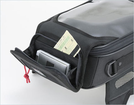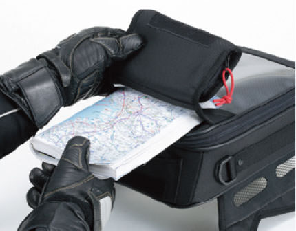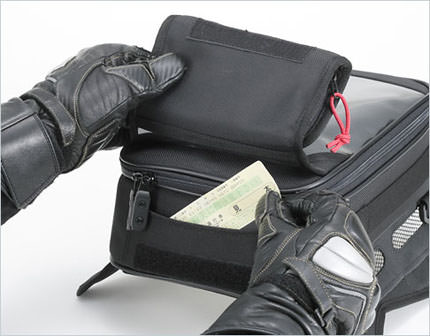 ※実際の商品と掲載画像の仕様・カラーが異なる場合がございます。ご注意ください。ライディングを邪魔しない、薄型&スラントフォルム!手前開口荷室 : 手前開口タイプで荷物が出し入れしやすいように設計。またメッシュポケットに磁気に弱い物等を収納できます。高速券専用ポケット : グローブをしたままでも素早く出し入れが可能です。ワンタッチオープンマップケース : ポケットで開閉!素早く地図を出し入れできるように手前開口タイプに設計しました。レインカバー専用ポケット : 突然の雨にも安心。すぐに出せるポケットに収納。