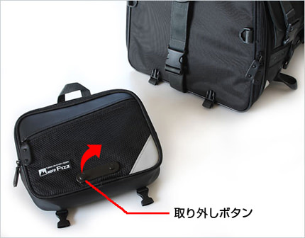 上面収納袋 : 本体の荷物を崩さずに、不意に増加した荷物の積載に便利な、収納袋を本体上面に装備。