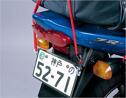 荷物固定の便利アイテム■ナンバープレートに共締めする簡単取り付け。■積載物を固定するコードやネットをしっかりサポート。■シンプルな形状で、オートバイのスタイルを選びません。