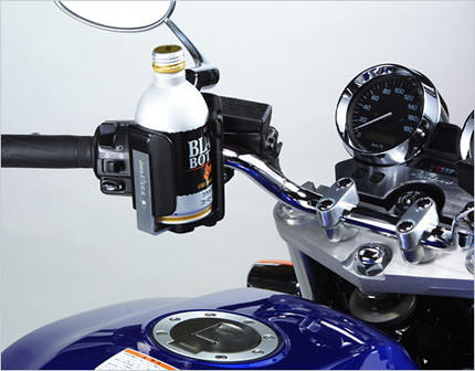 ボトルの大きさに合わせ調整可能新開発のスライドホルダーにより500ml以下のペットボトルや缶を収納可能。収納サイズ:Φ5370mm■取付けはパイプハンドル(Φ22.2mm)とバックミラーステー(8mm/10mm)取付け方法の2タイプが選択可能。■本体は振動・耐候性に優れたポリカーボ樹脂を使用。
