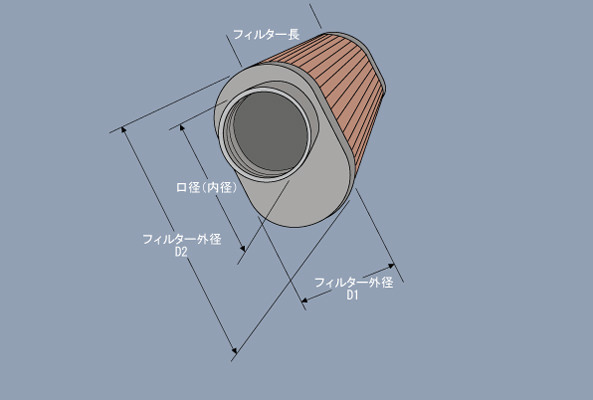 ※仕様・サイズをご確認いただきご注文くださいませ。カスタムフィルター オーバルテーパー口径(内径):55mmフィルター外径:76X102mmフィルター長:102mmエンドキャップ:クロームメッキアングル:C