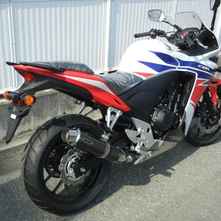 ※商品欠品時には受注生産となりお届けまでにしばらくお時間を要します。サイレンサータイプ:カーボン。JMCA認定・政府認証モデル。近接排気騒音:90デシベル、加速走行騒音:78デシベル。純正触媒仕様確認書付属。オイル交換、オイルフィルター交換対応。ベンチテストにより徹底的に性能をチェック、CBR400R の特性をより活かすべく開発しました。アクセルレスポンスの改善、低中速域のトルク・パワーUP によって回転の繋がりが更にスムーズに。センターパイプ前部にΦ42.7→Φ50 テーパーパイプを採用する事により、ストレスのない吹け上がりを実現。音質はツインの独特のパルス感を更にレーシーなイメージに味付け。ワイルド感あるサウンドを堪能頂けます。スリップオンマフラー取り付けに必要なジョイントガスケットを付属しております。