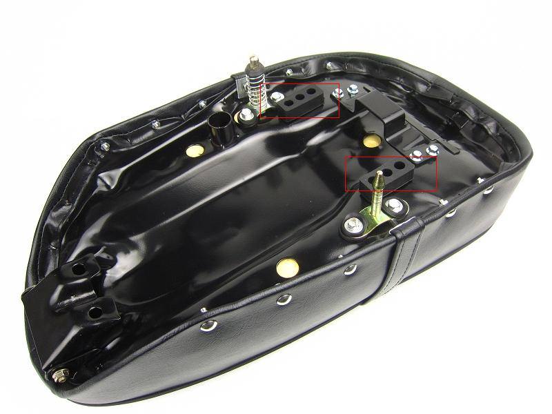 特長ダックスシート用のラバーBシートセッティング2個。このラバーは高さ15mmです。シートを6Vダックスフレームへ取り付けする際に有効です。画像中の赤マーキングパーツ内容シートラバーBシートセッティング数・・・2個シートラバーBシートセッティング高さ・・・15mmシート取り付け時に シートラバーBシートセッティングの高さを変更することで、ガタつきを防止できます。12Vフレーム=高さ22mm、6Vダックス=高さ15mmをご使用いただくことをお薦めします。取り付けの際はシリコングリスを根元に塗込んでください。ホンダ純正シートへの取り付け確認はしておりません。適合するミニモト製シート品番:0650・2447
